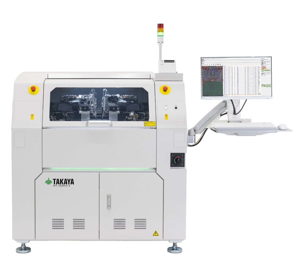 上下のフライングプローブを同時使用した、最大6プロープのコンビネーション検査が行える 次世代のデュアルサイドフライングプローブテスタ APT-2600FD も出展します。