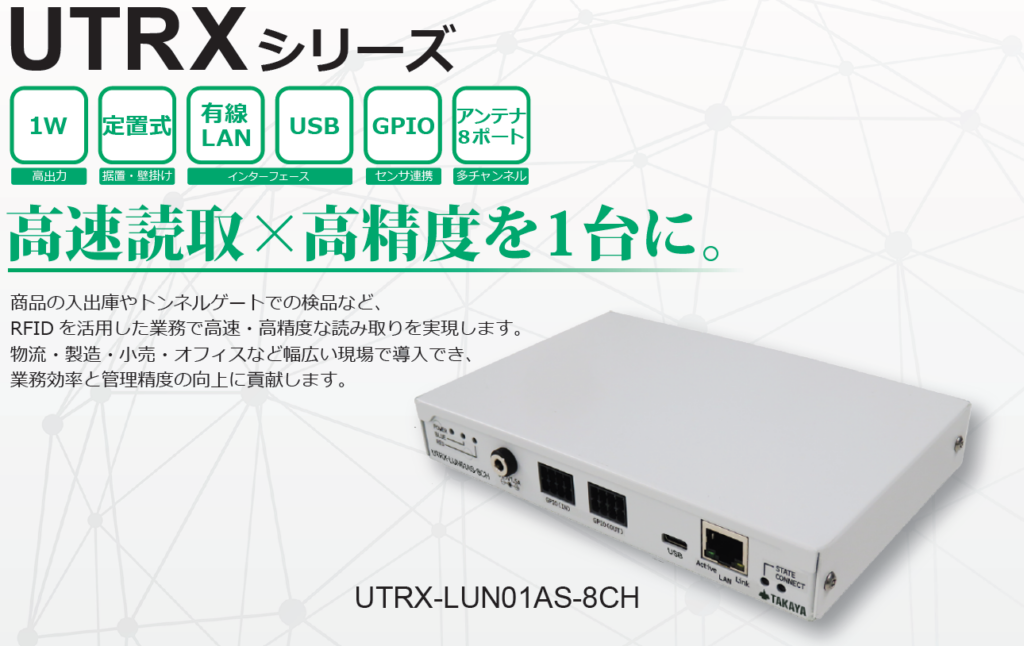 【新製品】UHF帯高出力リーダライタ 「UTRX-LUN01AS-8CH